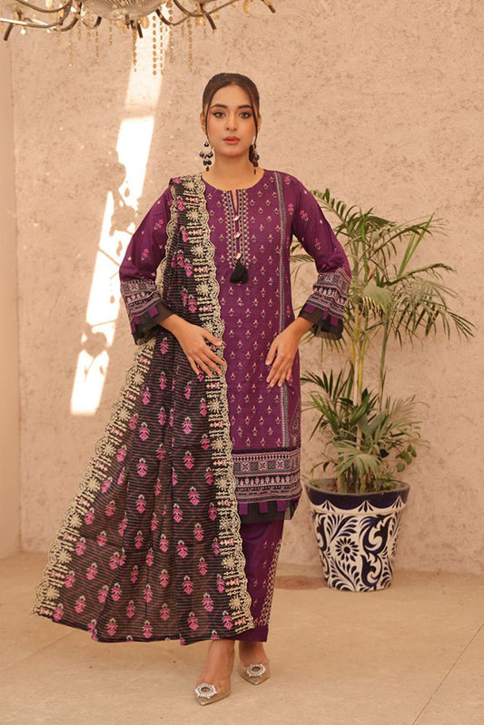 Majestic Plum 3-Piece Embroidered Lawn Set
