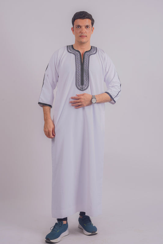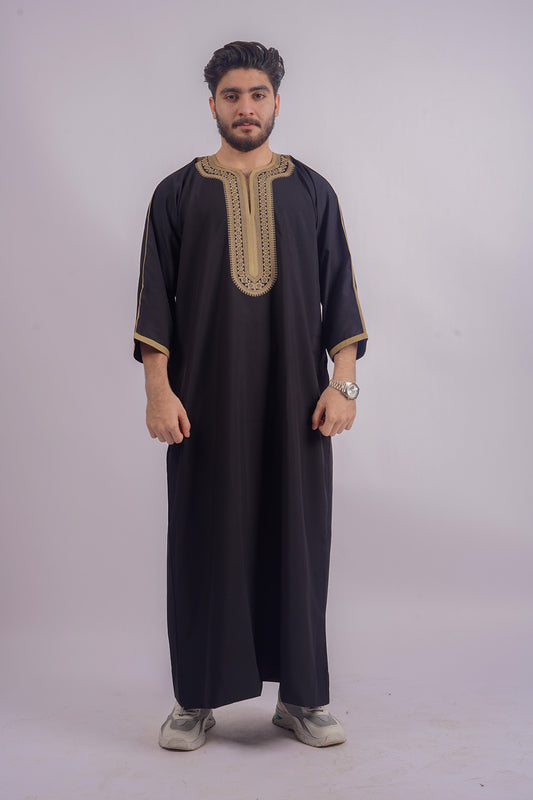 Aamsah’s Embroidered Thobes Collection blends intricate craftsmanship with timeless elegance, making them perfect for festive occasions, weddings, and formal gatherings.